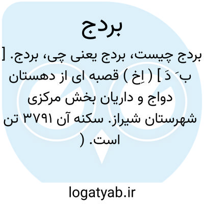 بردج. [ ب َ دَ ] ( اِخ ) قصبه ای از دهستان دواج و داریان بخش مرکزی شهرستان شیراز. سکنه آن 3791 تن است. ( از فرهنگ جغرافیایی ایران ج 7 ).