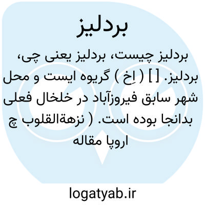 بردلیز. [ ] ( اِخ ) گریوه ایست و محل شهر سابق فیروزآباد در خلخال فعلی بدانجا بوده است. ( نزهةالقلوب چ اروپا مقاله سوم ص 81 ).