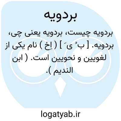 بردویه. [ ب ُ ی َ ] ( اِخ ) نام یکی از لغویین و نحویین است. ( ابن الندیم ).