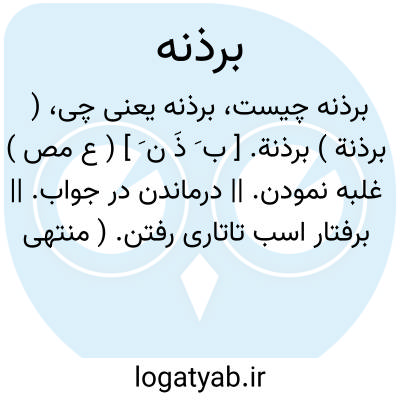 لغت نامه دهخدا ( برذنة ) برذنة. [ ب َ ذَ ن َ ] ( ع مص ) غلبه نمودن. || درماندن در جواب. || برفتار اسب تاتاری رفتن. ( منتهی الارب ). || سنگین شدن مرد. و اشتقاق برذون از این کلمه است. ( از اقرب الموارد ).