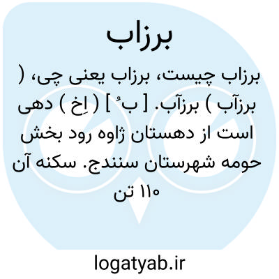 ( برزآب ) برزآب. [ ب ُ ] ( اِخ ) دهی است از دهستان ژاوه رود بخش حومه شهرستان سنندج. سکنه آن 110 تن است. ( از فرهنگ جغرافیایی ایران ج 5 ).