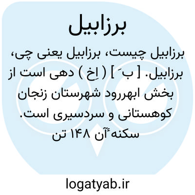 برزابیل. [ ب َ ] ( اِخ ) دهی است از بخش ابهررود شهرستان زنجان کوهستانی و سردسیری است. سکنه ٔآن 148 تن است. آب آن از چشمه و محصول آن غلات و بادام و شغل اهالی زراعت و صنایع دستی آنان قالیچه و گلیم و جاجیم بافی است. راه مالرو دارد و از طریق قره بلاغ ماشین میتوان برد. ( از فرهنگ جغرافیایی ایران ج 2 ).