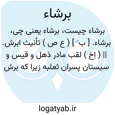 برشاء. [ ب َ ] ( ع ص ) تأنیث ابرش. || ( اِخ ) لقب مادر ذهل و قیس و سیستان پسران ثعلبه زیرا که برش یعنی خجکها بروی داشت یا از آن روی که میان وی و میان نتایج وی خلاف افتاد. || سنة برشاء؛ سال بسیارگیاه. ( منتهی الارب ) ( آنندراج ). || ارض برشاء؛ زمین با گیاهان رنگارنگ. ( منتهی الارب ). || ( اِ ) مردم. ( آنندراج ).کس. ( منتهی الارب ): ماادری ای البرشاء هو؛ ندانم او از کدام مردم است. ندانم او کیست. جماعت مردم. ( آنندراج ). گروه آدمیان. و رجوع به برساء و براساء شود.