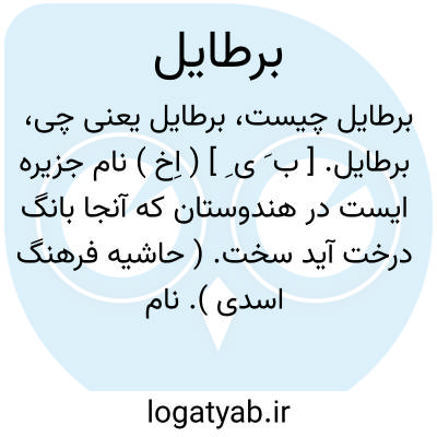 برطایل. [ ب َ ی ِ ] ( اِخ ) نام جزیره ایست در هندوستان که آنجا بانگ درخت آید سخت. ( حاشیه فرهنگ اسدی ). نام جزیره ای است در هندوستان که از یکی از درختان آن جزیره بانگی عظیم و صدایی مهیب می آید و بعضی گویند کوهی است در آن جزیره که شبها از آن کوه صدای طبل و دهل و سنج می آید. ( برهان ) ( آنندراج ). ورجوع به نزهةالقلوب مقاله 3 ص 232 شود: که خوانند برطایل او رابنام جزیری همه جای شادی و کام.عنصری ( از لغت نامه اسدی ).