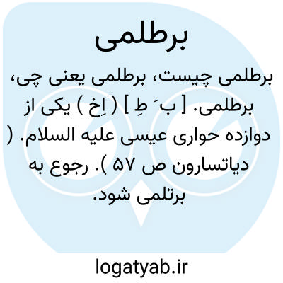 برطلمی. [ ب َ طِ ] ( اِخ ) یکی از دوازده حواری عیسی علیه السلام. ( دیاتسارون ص 57 ). رجوع به برتلمی شود.