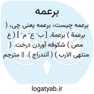( برعمة ) برعمة. [ ب َ ع َ م َ ] ( ع مص ) شکوفه آوردن درخت. ( منتهی الارب ) ( آنندراج ). || مترجم ابن البیطار در شرح کلمه وجعالکبد برعمة را به کالیس ترجمه کرده است و حق نیز با مترجم است و عبارت ابن البیطار این است: هی بقلة من أدق البقل تحبها الضأن لها زهرة غبراء فی برعمة مدورة و لها ورق صغیر جداً. ( یادداشت مؤلف ).