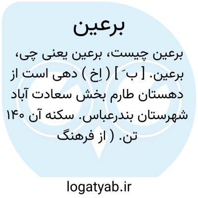 برعین. [ ب َ ] ( اِخ ) دهی است از دهستان طارم بخش سعادت آباد شهرستان بندرعباس. سکنه آن 140 تن. ( از فرهنگ جغرافیایی ایران ج 8 ).