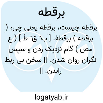 ( برقطة ) برقطة. [ ب َ ق َ طَ ] ( ع مص ) گام نزدیک زدن و سپس نگران روان شدن. || سخن بی ربط راندن. || پراکندن. پراکنده کردن. ( منتهی الارب ) ( ناظم الاطباء ). || در حال نگرانی روان گردیدن. ( ناظم الاطباء ).