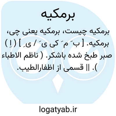 برمکیه. [ ب َ م َ کی ی َ / ی ِ ] ( اِ ) صبر طبخ شده باشکر. ( ناظم الاطباء ). || قسمی از اظفارالطیب. نوعی عطر مرکب. عطری است مرکب که آنرا مثلث نیز گویند. مثلثة. ( یادداشت دهخدا ). || بیخ والا. اذخر جامی. ( یادداشت دهخدا ). رجوع به اذخر شود.