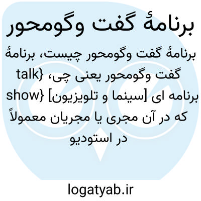 {talk show} [سینما و تلویزیون] برنامه ای که در آن مجری یا مجریان معمولاً در استودیو و در مقابل تماشاگران با افراد مشهور گفت وگو می کنند