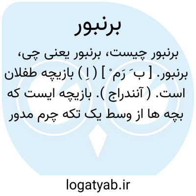 برنبور. [ ب َ رَم ْ ] ( اِ ) بازیچه طفلان است. ( آنندراج ). بازیچه ایست که بچه ها از وسط یک تکه چرم مدور نخی گذرانده بعد از اطراف نخ گرفته می چرخانند. ( شمس اللغات ).