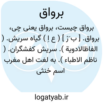 برواق. [ ب َرْ ] ( ع اِ ) گیاه سریش. ( الفاظالادویة ). سریش کفشگران. ( ناظم الاطباء ). به لغت اهل مغرب اسم خنثی است. ( از تحفه حکیم مؤمن ). اَبُجة. اسفودالس. تیقلیش. چربش. خنثی. || به عجمی سنگی است سبک و زرد و چون بسایند مایل به سفیدی باشد و در عراق متکون گردد و مثل کهرباو سندروس کاه را می رباید. ( از تحفه حکیم مؤمن ).