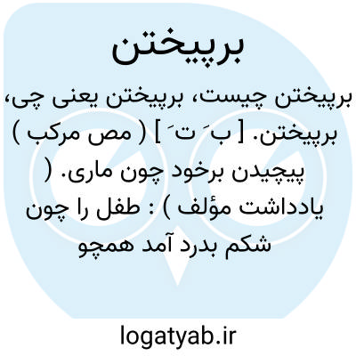 لغت نامه دهخدا برپیختن. [ ب َ ت َ ] ( مص مرکب ) پیچیدن برخود چون ماری. ( یادداشت مؤلف ): طفل را چون شکم بدرد آمدهمچو افعی ز رنج او برپیخت.پروین خاتون.رجوع به پیختن شود.