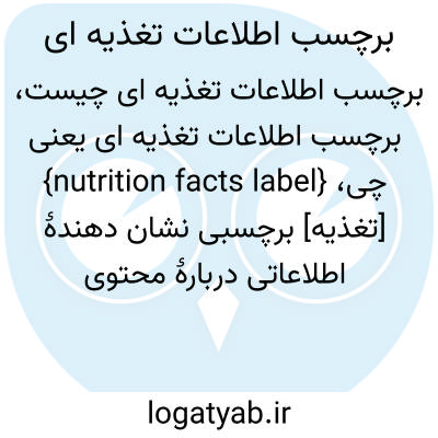 {nutrition facts label} [تغذیه] برچسبی نشان دهندۀ اطلاعاتی دربارۀ محتوی مواد مغذی که برای کمک به مصرف کنندگان در انتخاب مواد غذایی تهیه میشود