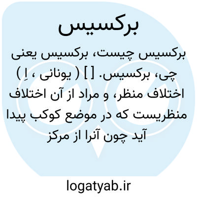 برکسیس. [ ] ( یونانی، اِ ) اختلاف منظر، و مراد از آن اختلاف منظریست که در موضع کوکب پیدا آید چون آنرا از مرکز زمین بینند یا موضعی که آنرا از حدبه ارض نگرند. ( یادداشت مؤلف ).
