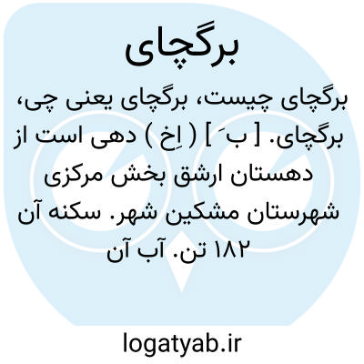 برگچای. [ ب َ ] ( اِخ ) دهی است از دهستان ارشق بخش مرکزی شهرستان مشکین شهر. سکنه آن 182 تن. آب آن از چشمه و محصول آن غلات و حبوب است. ( از فرهنگجغرافیایی ایران ج 4 ).
