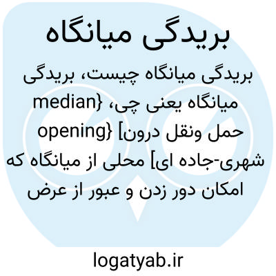 {median opening} [حمل ونقل درون شهری-جاده ای] محلی از میانگاه که امکان دور زدن و عبور از عرض معبر را فراهم سازد متـ. بریدگی 2