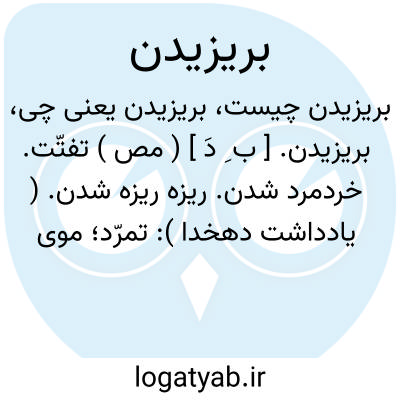 بریزیدن. [ ب ِ دَ ] ( مص ) تفتّت. خردمرد شدن. ریزه ریزه شدن. ( یادداشت دهخدا ): تمرّد؛ موی بریزیدن. ( از دستوراللغة ). و رجوع به بریزانیدن شود. || متلاشی شدن. از هم پاشیدن. پوسیدن: تناثر لحم؛ بریزیدن گوشت. ( از یادداشت دهخدا ). از هم فروریختن: آن مردگان در آن چهار دیوار بماندند سالیان بسیار و جمله بریزیدند و خاک شدند. ( ترجمه تفسیر طبری ). التهرؤ؛ از هم بریزیدن گوشت. ( از مجمل اللغة ). و رجوع به بریزانیدن شود.