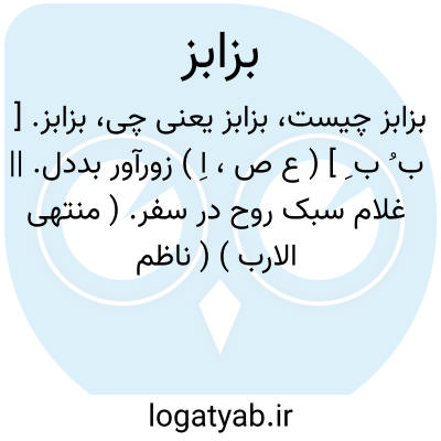 بزابز. [ ب ُ ب ِ ] ( ع ص، اِ ) زورآور بددل. || غلام سبک روح در سفر. ( منتهی الارب ) ( ناظم الاطباء ). بُزبُز. ( منتهی الارب ). رجوع به بزبز شود.