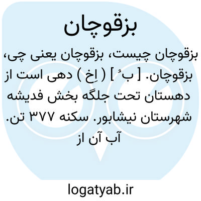 بزقوچان. [ ب ُ ] ( اِخ ) دهی است از دهستان تحت جلگه بخش فدیشه شهرستان نیشابور. سکنه 377 تن. آب آن از قنات و محصول آن غلات و شغل اهالی زراعت است. ( از فرهنگجغرافیایی ایران ج 9 ).