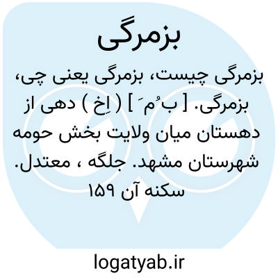 بزمرگی. [ ب ُم َ ] ( اِخ ) دهی از دهستان میان ولایت بخش حومه شهرستان مشهد. جلگه، معتدل. سکنه آن 159 تن. محصول آن غلات. شغل اهالی زراعت و مالداری و قالیچه و گلیم بافی.راه آن مالرو است. ( از فرهنگجغرافیایی ایران ج 9 ).