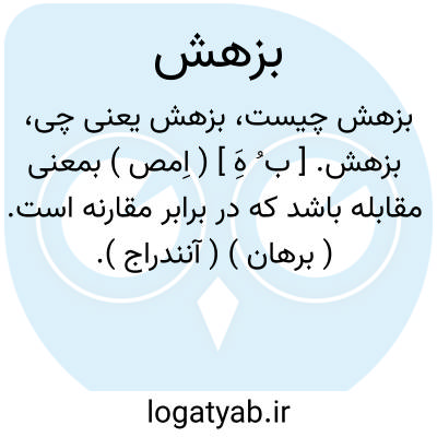 لغت نامه دهخدا بزهش. [ ب ُ هَِ ] ( اِمص ) بمعنی مقابله باشد که در برابر مقارنه است. ( برهان ) ( آنندراج ).