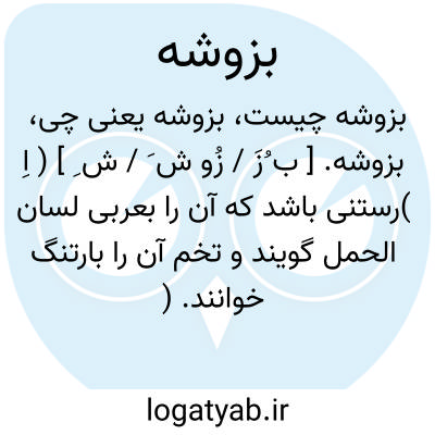 بزوشه. [ ب ُزَ / زُو ش َ / ش ِ ] ( اِ )رستنی باشد که آن را بعربی لسان الحمل گویند و تخم آن را بارتنگ خوانند. ( برهان ) ( آنندراج ) ( انجمن آرای ناصری ). خسک. تخمش سرد و خشک است. ( نزهةالقلوب از یادداشت دهخدا ). لسان الحمل و بارتنگ. ( ناظم الاطباء ).