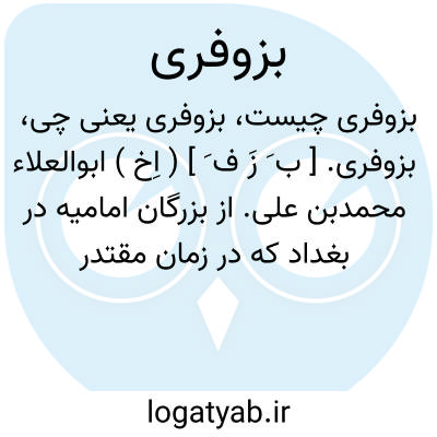 بزوفری. [ ب َ زَ ف َ ] ( اِخ ) ابوالعلاء محمدبن علی. از بزرگان امامیه در بغداد که در زمان مقتدر خلیفه عباسی از طرف ابن الفرات وزیر المقتدر عامل واسط شد. و رجوع به خاندان نوبختی تألیف عباس اقبال صص 99-100 شود.