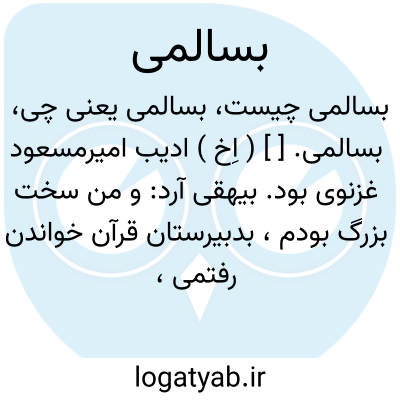 بسالمی. [ ] ( اِخ ) ادیب امیرمسعود غزنوی بود. بیهقی آرد: و من سخت بزرگ بودم، بدبیرستان قرآن خواندن رفتمی، و خدمتی کردمی چنانکه کودکان کنند و بازگشتمی تا چنان شد که ادیب خویش را که وی را بسالمی گفتندی امیرمسعود گفت: عبدالغفار را از ادب چیزی بباید آموخت... ( تاریخ بیهقی چ ادیب ص 106 چ فیاض ص 112 ). و شاید تصحیف سالمی باشد.