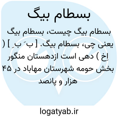 بسطام بیگ. [ ب َ ب ِ ] ( اِخ ) دهی است ازدهستان منگور بخش حومه شهرستان مهاباد در 45 هزار و پانصد هزارگزی جنوب باختری مهاباد و 35 هزارگزی باختر شوسه مهاباد به سردشت کوهستانی سردسیر با 169 تن سکنه. آب آن از رودخانه بادین آباد، محصول آنجا غلات، توتون و حبوب. ( از فرهنگ جغرافیایی ایران ج 4 ).
