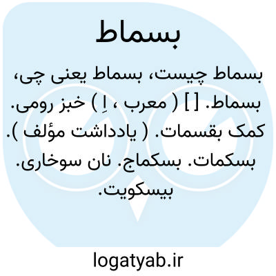 بسماط. [ ] ( معرب، اِ ) خبز رومی. کمک بقسمات. ( یادداشت مؤلف ). بسکمات. بسکماج. نان سوخاری. بیسکویت. متداول امروز عراق باسماق، مأخوذ از ترکی.