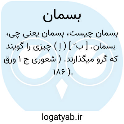 بسمان. [ ب َ ] ( اِ ) چیزی را گویند که گرو میگذارند. ( شعوری ج 1 ورق 186 ).
