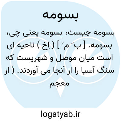 بسومه. [ ب َ م َ ] ( اِخ ) ناحیه ای است میان موصل و شهریست که سنگ آسیا را از آنجا می آوردند. ( از معجم البلدان ).