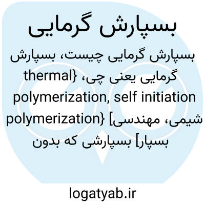 فرهنگستان زبان و ادب {thermal polymerization, self initiation polymerization} [شیمی، مهندسی بسپار] بسپارشی که بدون استفاده از آغازگر و فقط با گرما آغاز می شود