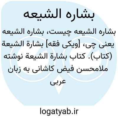 [ویکی فقه] بشارة الشیعة (کتاب). کتاب بشارة الشیعة نوشته ملامحسن فیض کاشانی به زبان عربی و در موضوع حقانیت مذهب شیعه اثنی عشری است.