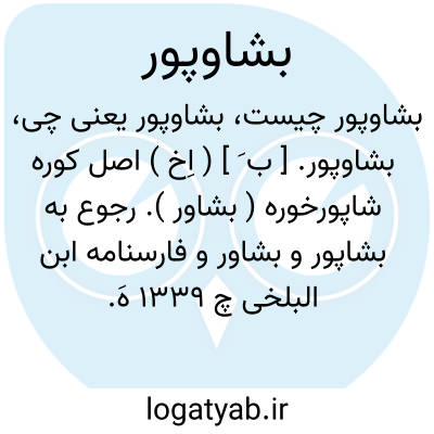 بشاوپور. [ ب َ ] ( اِخ ) اصل کوره شاپورخوره ( بشاور ). رجوع به بشاپور و بشاور و فارسنامه ابن البلخی چ 1339 هَ. ق. کمبریج ص 141 شود.