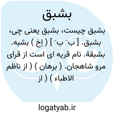 بشبق. [ ب َ ب َ ] ( اِخ ) بشبه. بشبقة. نام قریه ای است از قرای مرو شاهجان. ( برهان ) ( از ناظم الاطباء ) ( از آنندراج ) ( از معجم البلدان ) ( از سروری ) ( از مرآت البلدان ج 1 ص 213 ) ( از اللباب ج 1 ص 126 ). و رجوع به شعوری ج 1 ورق 171 و بشبه شود.