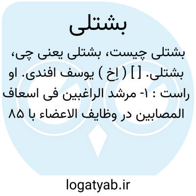 بشتلی. [ ] ( اِخ ) یوسف افندی. او راست: 1- مرشد الراغبین فی اسعاف المصابین در وظایف الاعضاء با 85 تصویر. 2 - هدیةالملوک فی آداب السلوک در اخلاق شرقی و غربی چ 1895 م. مصرچ 3 در 1909 م. ( از معجم المطبوعات ج 1 ستون 567 ).