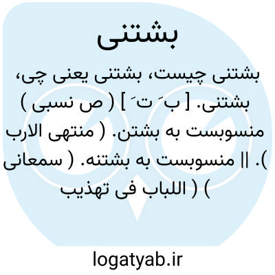 بشتنی. [ ب َ ت َ ] ( ص نسبی ) منسوبست به بشتن. ( منتهی الارب ). || منسوبست به بشتنه. ( سمعانی ) ( اللباب فی تهذیب الانساب ). رجوع به بشتن و بشتنه شود.