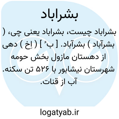 ( بشرآباد ) بشرآباد. [ ب ُ ] ( اِخ ) دهی از دهستان مازول بخش حومه شهرستان نیشابور با 526 تن سکنه. آب از قنات. محصول آنجا غلات. ( از فرهنگ جغرافیایی ایران ج 9 ).
