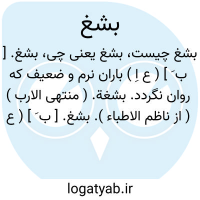 بشغ. [ ب َ ] ( ع اِ ) باران نرم و ضعیف که روان نگردد. بشغة. ( منتهی الارب ) ( از ناظم الاطباء ).