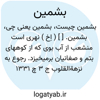 بشمین. [ ] ( اِخ ) نهری است منشعب از آب بوی که از کوههای بتم و صغانیان برمیخیزد. رجوع به نزهةالقلوب ج 3 چ 1331 هَ. ق. لندن ص 213 شود.
