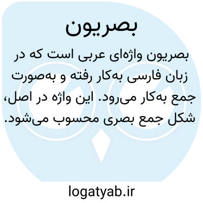 بصریون واژه‌ای عربی است که در زبان فارسی به‌کار رفته و به‌صورت جمع به‌کار می‌رود. این واژه در اصل، شکل جمعِ بصری محسوب می‌شود و در متون کهن و فرهنگ‌نامه‌های تاریخی مانند ناظم‌الاطباء به‌همین معنا ثبت شده است. از نظر دستوری، بصریون به‌عنوان صفت نسبی یا اسم به‌کار می‌رود و معمولاً برای اشاره به منسوبان شهر بصره یا اشخاص مرتبط با آن منطقه استفاده می‌شود. کاربرد این واژه بیشتر در متون ادبی، تاریخی و کهن فارسی دیده می‌شود و امروزه کمتر در گفتار روزمره به‌کار می‌رود. در نگارش این واژه، رعایت نیم‌فاصله میان اجزای آن ضروری است و باید به‌صورت «ب‌ص‌ری‌ون» نوشته شود تا از نظر املایی و نگارشی کاملاً صحیح باشد. همچنین، توجه به تلفظ درست آن با تشدید بر روی حرف «ص» و حرکت کسره بر روی «ب» و «ص» از دیگر نکات مهم در خوانش دقیق این کلمه است.
