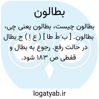 بطالون. [ ب َطْ طا ] ( ع اِ ) ج ِبطال در حالت رفع. رجوع به بطال و قفطی ص 183 شود.