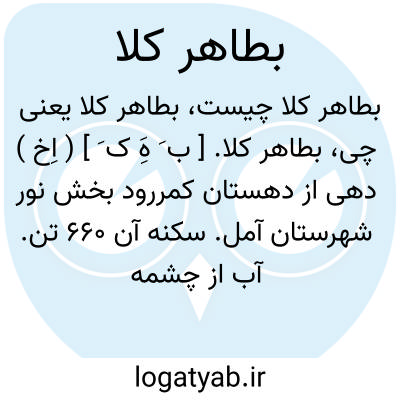 بطاهر کلا. [ ب َ هَِ ک َ ] ( اِخ ) دهی از دهستان کمررود بخش نور شهرستان آمل. سکنه آن 660 تن. آب از چشمه سار. محصول آنجا غلات، لبنیات، سیب زمینی، باقلا. شغل اهالی آن زراعت و گله داری. ( از فرهنگ جغرافیایی ایران ج 3 ). و رجوع به جغرافیای مازندران و استرآباد ص 110 شود.