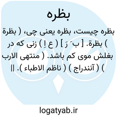 لغت نامه دهخدا ( بظرة ) بظرة. [ ب َ رَ ] ( ع اِ ) زنی که در بغلش موی کم باشد. ( منتهی الارب ) ( آنندراج ) ( ناظم الاطباء ). || حلقه انگشتری بی کرمی. ( کذا ). ( منتهی الارب ) ( آنندراج ). حلقه انگشتری بدون نگین. ( ناظم الاطباء ).بظرة. [ ب ِ رَ ] ( ع اِ ) رایگان، و منه: ذهب دمه بظراً. ( منتهی الارب ). رایگان. ( ناظم الاطباء ).بظرة. [ ب ُ رَ ] ( ع اِ ) تندی میان لب بالایین. ( منتهی الارب ) ( آنندراج ) ( ناظم الاطباء ).