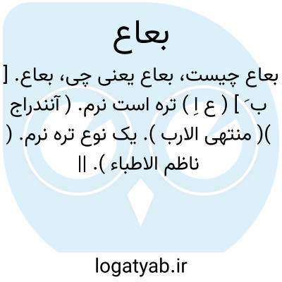 بعاع. [ ب َ ] ( ع اِ ) تره است نرم. ( آنندراج )( منتهی الارب ). یک نوع تره نرم. ( ناظم الاطباء ). || گرانی ابر از باران. ( منتهی الارب ) ( ناظم الاطباء ) ( آنندراج ) ( از اقرب الموارد ). || رخت جهاز. ( منتهی الارب ) ( آنندراج ) ( ناظم الاطباء ). جهاز. ( اقرب الموارد ). || متاع. ( اقرب الموارد ). || متاع افتاده روز غارت. ( منتهی الارب ) ( ناظم الاطباء ) ( آنندراج ) ( از اقرب الموارد ). || القی علیه بعاعه؛ ای نفسه. ( منتهی الارب ) ( از اقرب الموارد ). || القی السحاب بعاعه؛ همه باران خود را ریخت آن ابر. ( ناظم الاطباء ) ( از اقرب الموارد ) ( از منتهی الارب ).