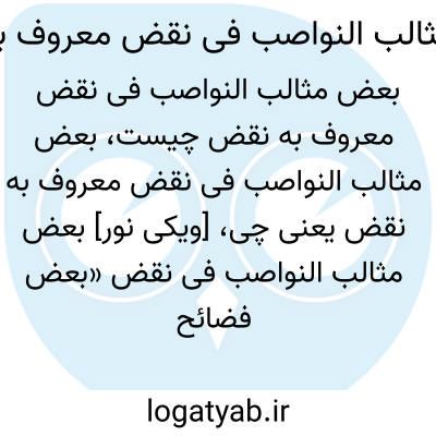 [ویکی نور] بعض مثالب النواصب فی نقض «بعض فضائح الروافض» معروف به نقض. بعض مثالب النواصب فی نقض «بعض فضائح الروافض»، معروف به نقض، تألیف نصیرالدین ابوالرشید عبدالجلیل رازی قزوینی، از آثار کلامی شیعه از نوع ردیه‎نویسی، است. این کتاب در قرن ششم قمری در شهر ری و در پاسخ به کتاب «بعض فضائح الروافض» نگاشته شده که با تهمت و سخنان ناشایست، در صدد ایجاد تفرقه میان شیعیان و سنیان بوده است.