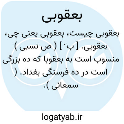 لغت نامه دهخدا بعقوبی. [ ب َ ] ( ص نسبی ) منسوب است به بعقوبا که ده بزرگی است در ده فرسنگی بغداد. ( سمعانی ).
