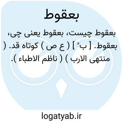 بعقوط. [ ب ُ ] ( ع ص ) کوتاه قد. ( منتهی الارب ) ( ناظم الاطباء ).